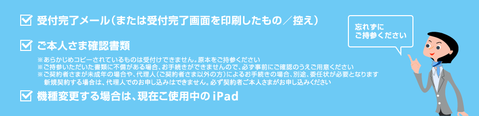 あらかじめご準備いただきますと、「電話帳かんたんコピー」(アプリケーション)のご利用やその他店舗でのお手続きがスムーズとなります。