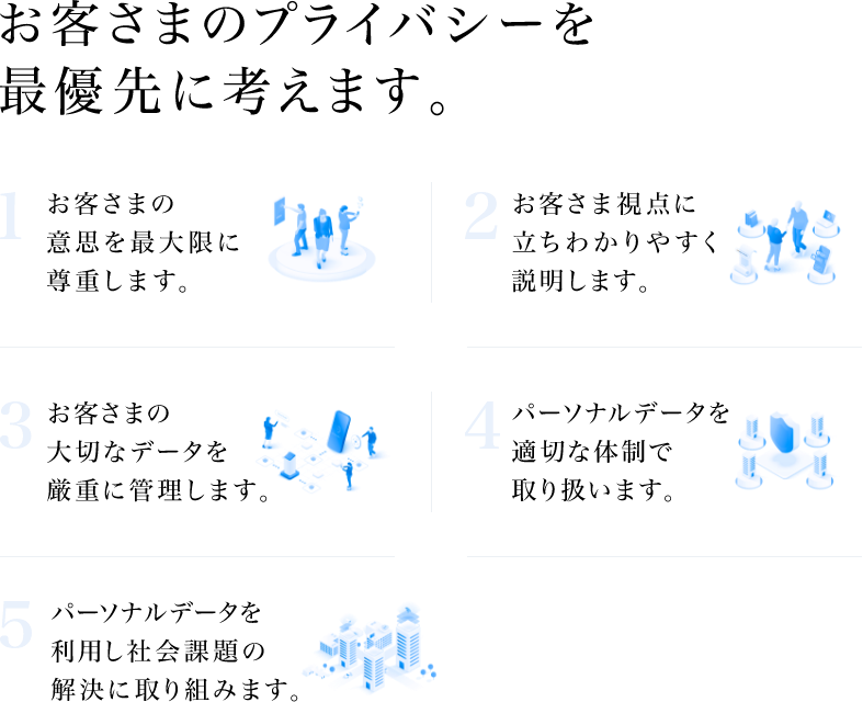 お客さまからお預かりしているパーソナルデータの取り扱いについてご説明します。