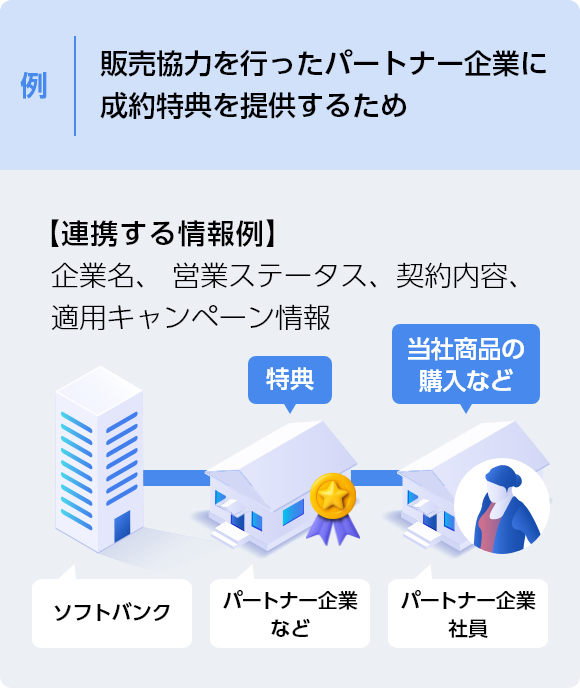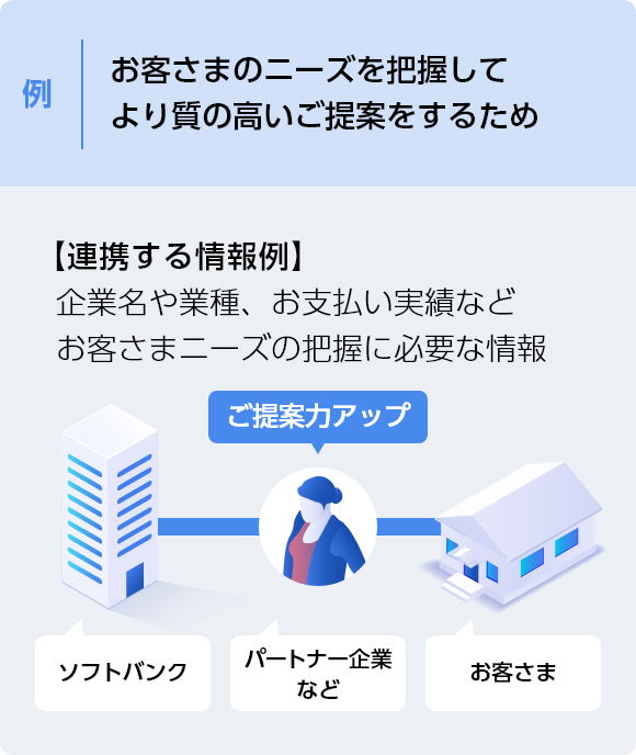 当社は、以下のような目的でコーポレートデータをパートナー企業やソフトバンクのグループ企業に連携することがあります。