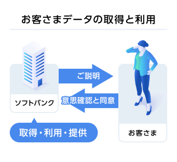 ソフトバンクが法人向けサービスなどの目的でパートナー企業の個人データの提供を受ける場合は、予め契約を定め、その条件に従ってお取り扱いいたします。