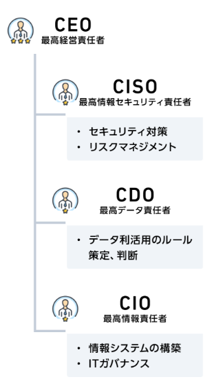 セキュリティ、データ利活用、情報システムの3つの観点で責任者を配置し、体制の強化を図っています。