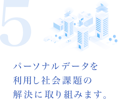 お客さまのパーソナルデータを利用することで、さまざまな社会課題の解決にも取り組み、誰もが快適に暮らせる豊かな社会の創造を目指します。