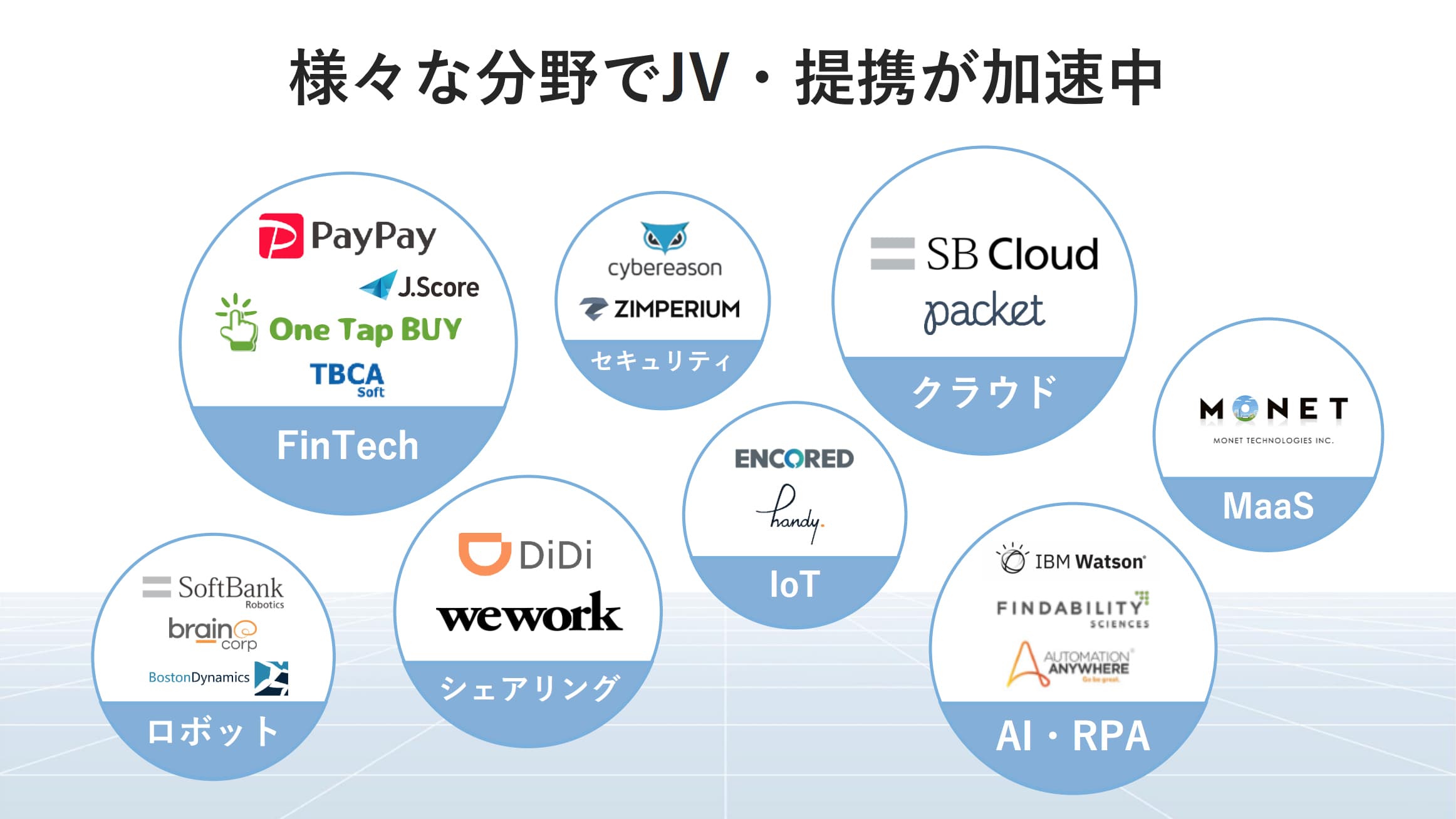 事業提携や、出資だけを行う方法もありますが、私たちは、ソフトバンク・ビジョン・ファンドの出資先企業の持つ先進的な技術やサービスと、ソフトバンクの持つ顧客基盤、人材、ノウハウ、マーケティングチャネルなどのアセットを活用して、ソフトバンクの成長の核となる事業を作っていきます。