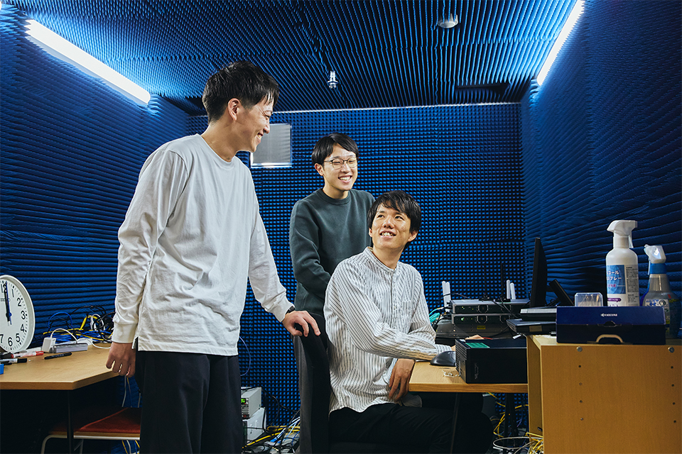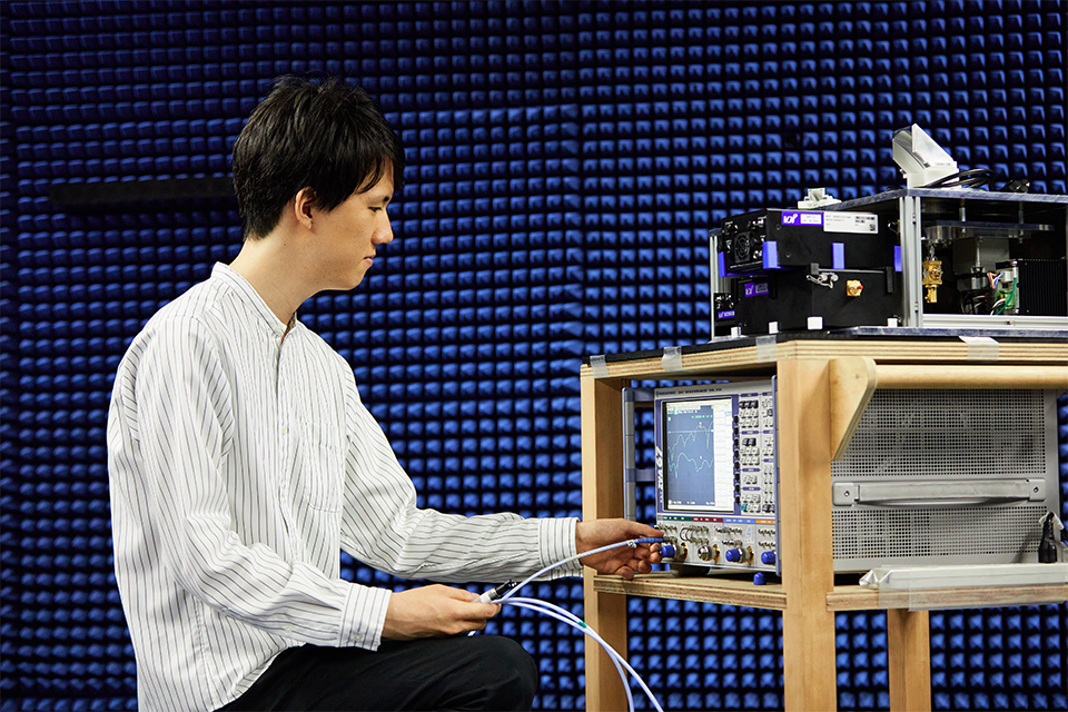 - そうだね。大学の研究室では主にパソコンでシミュレーションを行っていましたが、先端技術研究所に入ったら高価な測定器がたくさん揃っているからワクワクしました。ただ、実際に測定器を使うとなると、思った以上にセットアップが大変で驚きました。何十キロもする重い測定器を台車に乗せ、電波を遮断する「シールドルーム」に運び込み、いくつものケーブルを繋ぐのに2時間近くもかかる。測定だけで丸一日かかることもあります。
