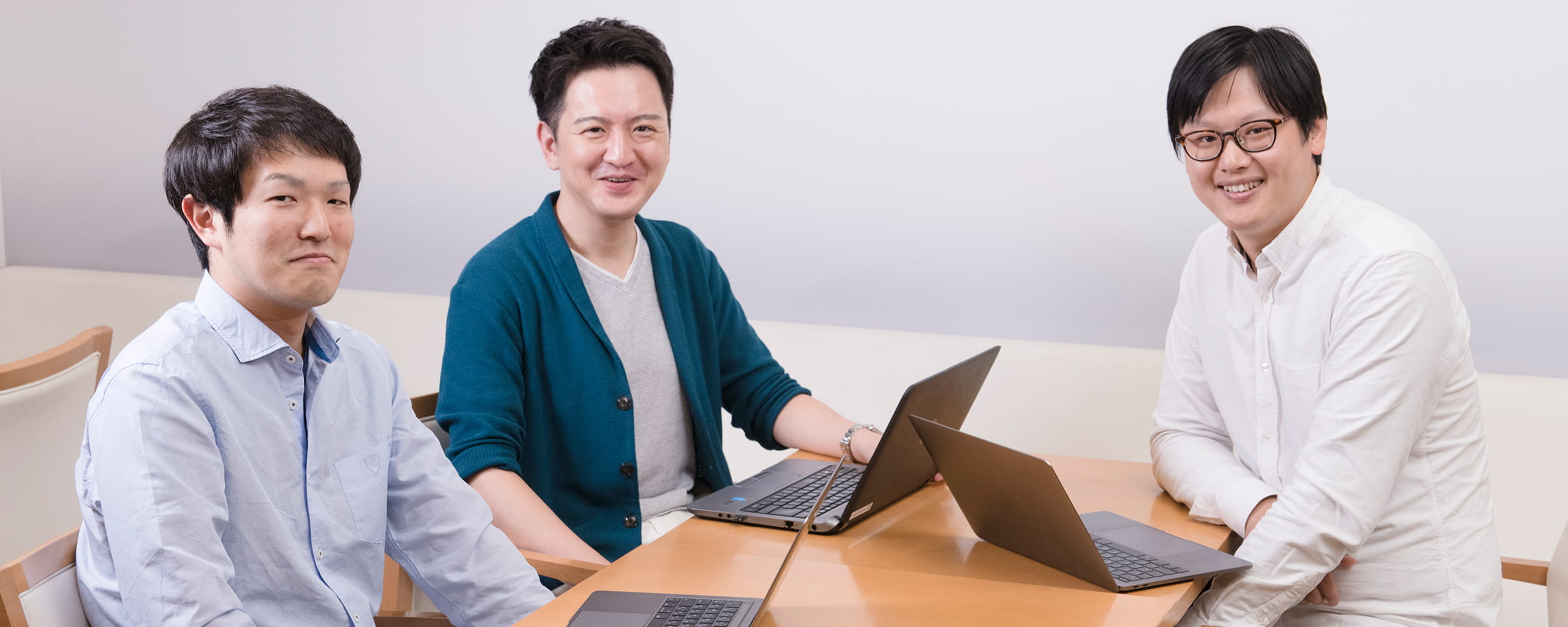 金子 剛樹、IoTプラットフォームの開発と導入を行う葉 斐の3人。いずれも2017年~2018年に中途入社。