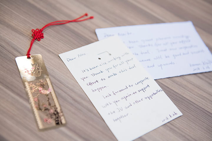 中国という大きな市場から日本というグローバル市場へのサービス投入は、DiDiにとっても挑戦だったのかもしれません。彼女はDiDiでブラジルやメキシコでの事業展開を進めてきた一人で、グローバル展開への理解も深い。私と彼女は同じ女性だったこともあり、仲良くさせてもらっていて、見えないところでDiDi側の各プロジェクトメンバーと色んな課題を整理してくれました。法務という立場でありながら、アプリの改修や契約条件まで、事業をスケジュール通りに進めるために必要なラインまでを合意しましょう、と。無事にJVを設立し、7月のSoftBank Worldで発表できたことも、彼女の協力なしには成しえなかったかもしれない」と高野は振り返る。JVの設立プロジェクトが終わり、彼女が来日した際には、戦友である高野と船田に宛てた直筆のレターを手渡されたという。