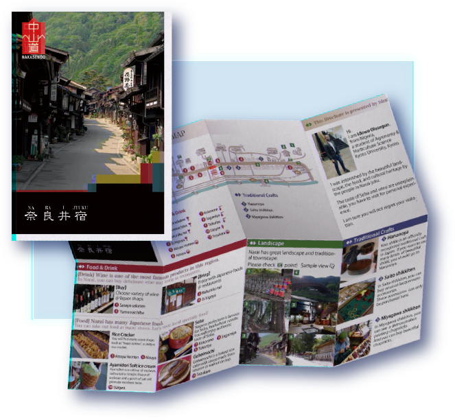 この提案をかたちにするにあたって、観光客の行動プロセス、心理などについては、カスタマージャーニーをしながら、細かく設計を行いました。観光客の多くが駅を通る。駅に降り立った時にパンフレットが置いてあれば、まずパンフレットをとるはずだと考えました。また、私たちが、アジアの建物を見た時とヨーロッパの建物を見た時、全く違う印象を持つのと同じように、奈良井宿の建物を見た時の感じ方も国籍によって違うのではないかと考えました。