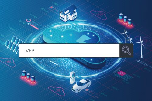 VPPとは、再生可能エネルギーや蓄電池など複数の小規模なエネルギーリソースをIoT技術で管理、制御することで、電力の需給バランスの調整を行う仕組み。