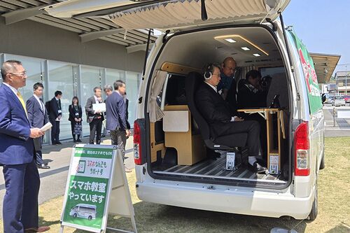 行政サービスのデジタル化や地域活性化に積極的に取り組む自治体のひとつ、群馬県富岡市。先日、平将明デジタル大臣が視察に訪れ、移動型スマホ教室を行うソフトバンクの「スマホなんでもサポート号」に体験乗車しました。