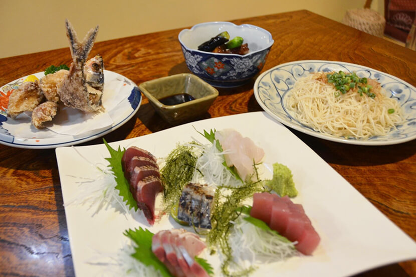 宮古島の繁華街・平良市街地にある「大衆居酒屋 なみ吉」。観光客はもちろん、地元の人たちも多く集うお店で、取材メンバーが伺った日も終始満席の大賑わいでした。沖縄の県魚でもある「グルクン」の唐揚げや、シンプルだけれどクセになるおいしさの「ソーメンちゃんぷる」は特に絶品。泡盛を傾けながら、島の料理を味わえば、運転で疲れた体も癒されること間違いなしです。