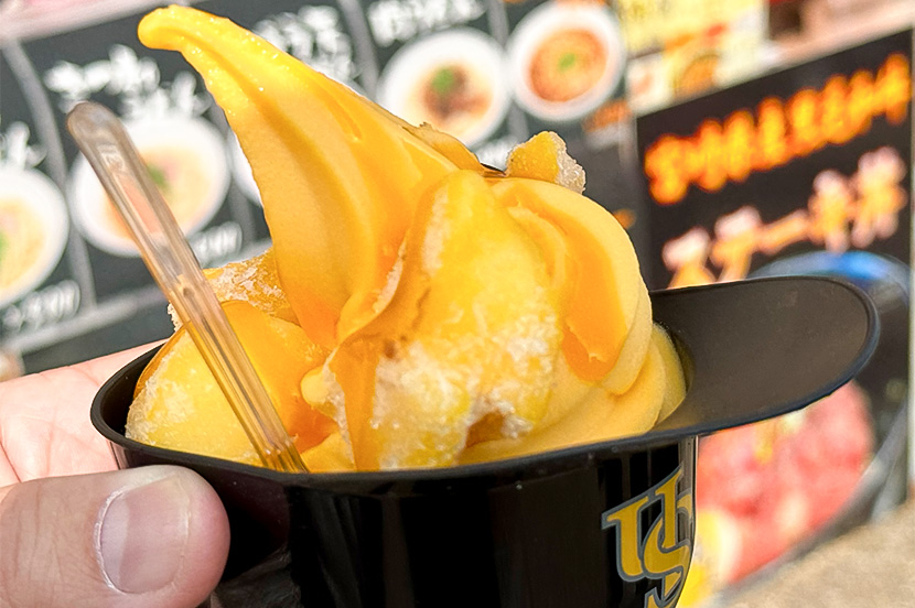 その中で、まず目を引いたのが、飲食ブースが立ち並ぶ「ホークスビレッジ」。宮崎県発祥のご当地グルメ「チキン南蛮」や、香ばしい香りが食欲をそそる「地鶏炭火焼」をはじめ、宮崎牛のステーキ、マンゴーアイスなど、宮崎のソウルフードが勢ぞろいで、どれを食べようか目移りしてしまいます。