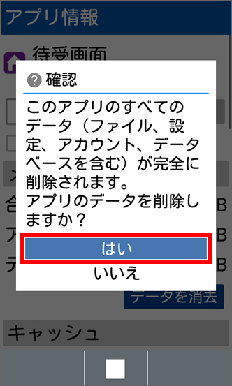 アプリケーションによっては、一度消去するとデータを復元できませんので、ご注意ください。(例:「メール」アプリケーション等)