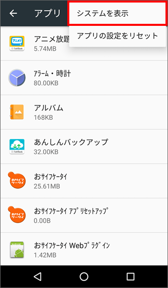 「システムを表示」を選択