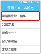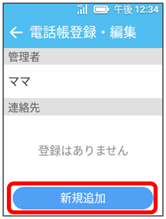 ホーム画面で「せってい」→「管理者設定」→暗証番号を入力し「OK」→「電話・メール設定」→「電話帳登録・編集」→「新規追加」より、連絡先の追加を行うことができます。