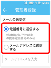 「電話番号に送信する」/「メールアドレスに送信する」のいずれかを選択