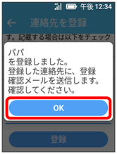 「登録」を選択すると確認が表示され、「OK」を選択すると、連絡先の登録は完了です。