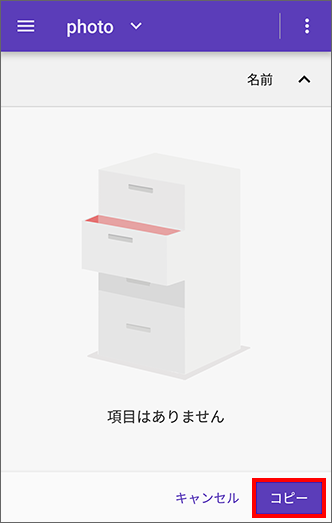 移動先のフォルダを選択し、「コピー」/「移動」を選択