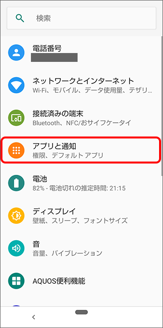 以下の画像は、AQUOS R2 compactの画面を例としています。