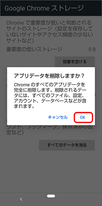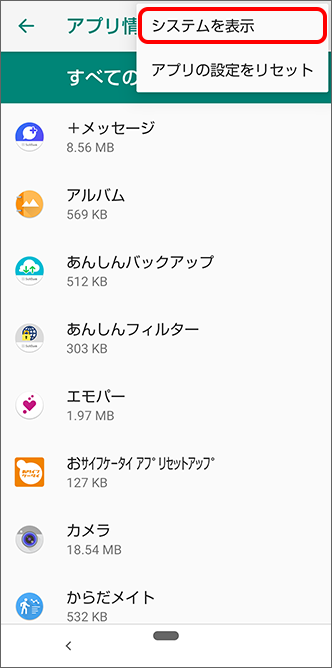 「設定」→「アプリと通知」→「〇個のアプリをすべて表示」→「︙(メニュー)」→「システムを表示」→該当するアプリケーション→「ストレージ」→「容量を管理」→「すべてのデータを消去」→「OK」で完了です。