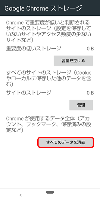 - ※「ストレージを消去」の表示がある場合は、手順10に進んでください。