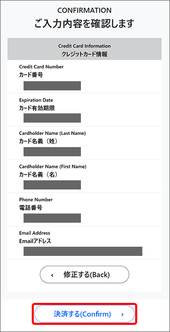 ご入力内容をご確認し、「決済する(Confirm)」をタップ